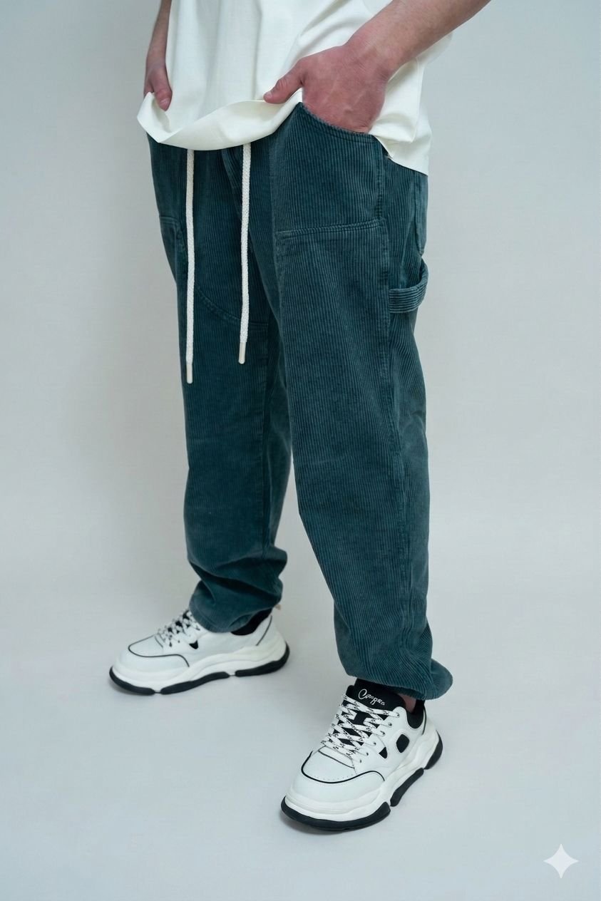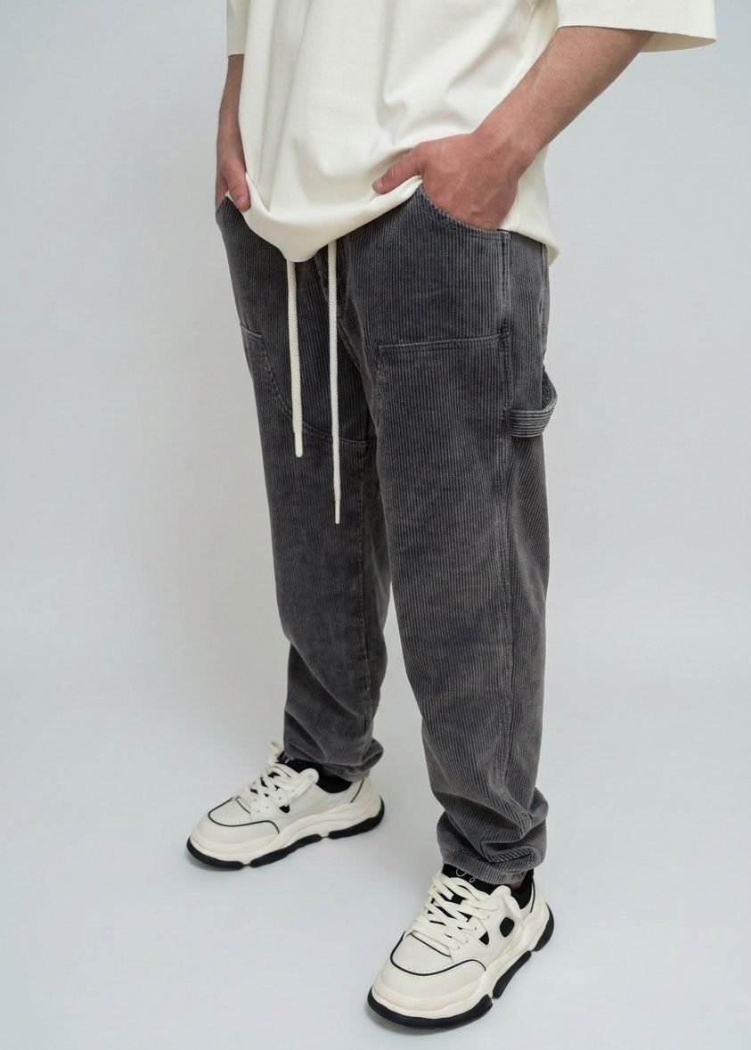מכנס קורדרוי בטקסטורת פסים עשירה ובגזרת Carpenter פונקציונלית עם לולאת צד.