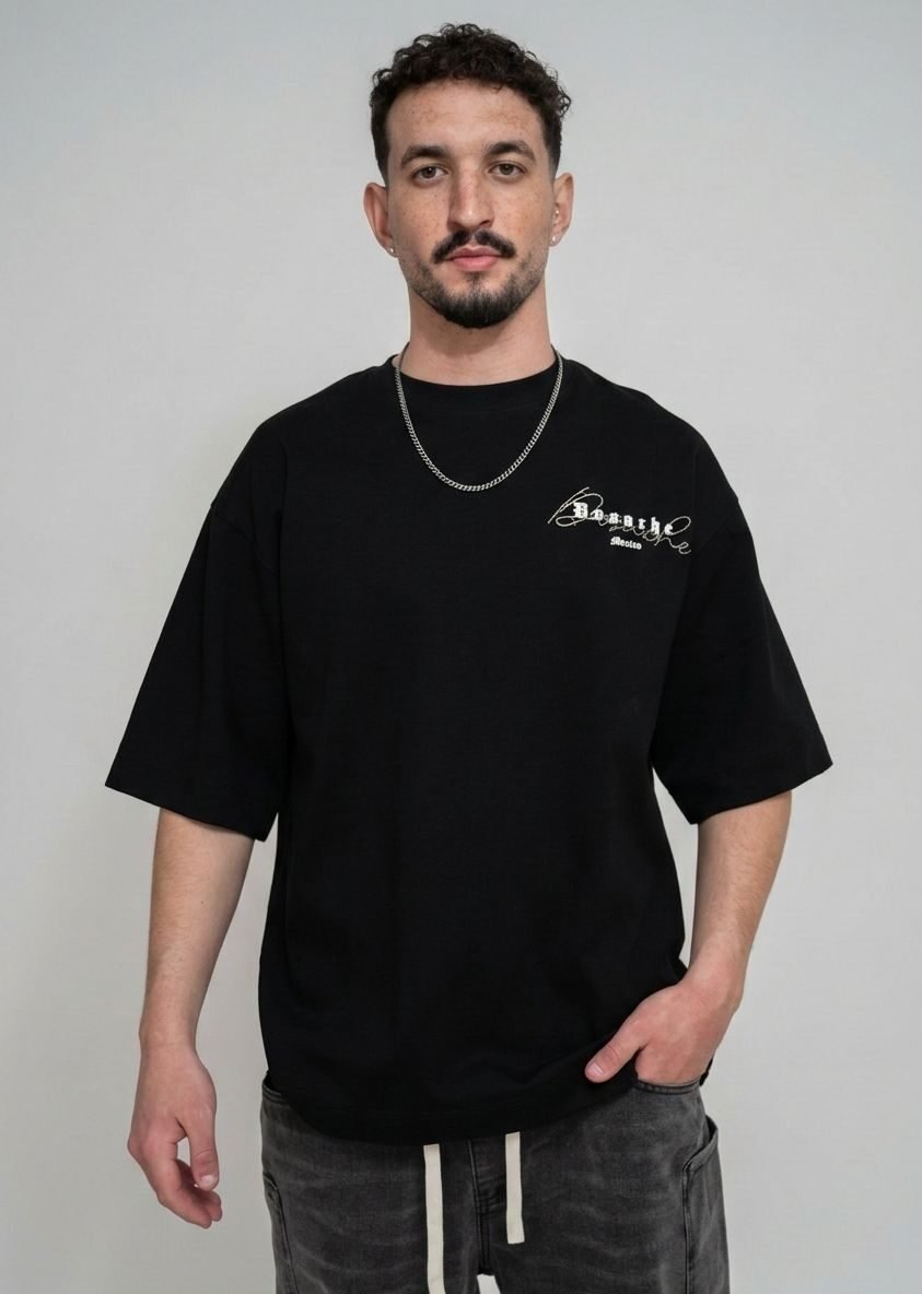 טי-שירט Oversize שחורה עם גרפיקה בסטייל סטריט-וור מדויק.